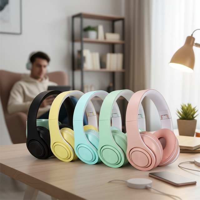 Auriculares inalámbricos P39 con sonido nítido, conexión Bluetooth 5.0, micrófono integrado y diseño plegable. Ofrecen hasta 10 h de batería y conexión por cable, USB o tarjeta TF para máxima versatilidad